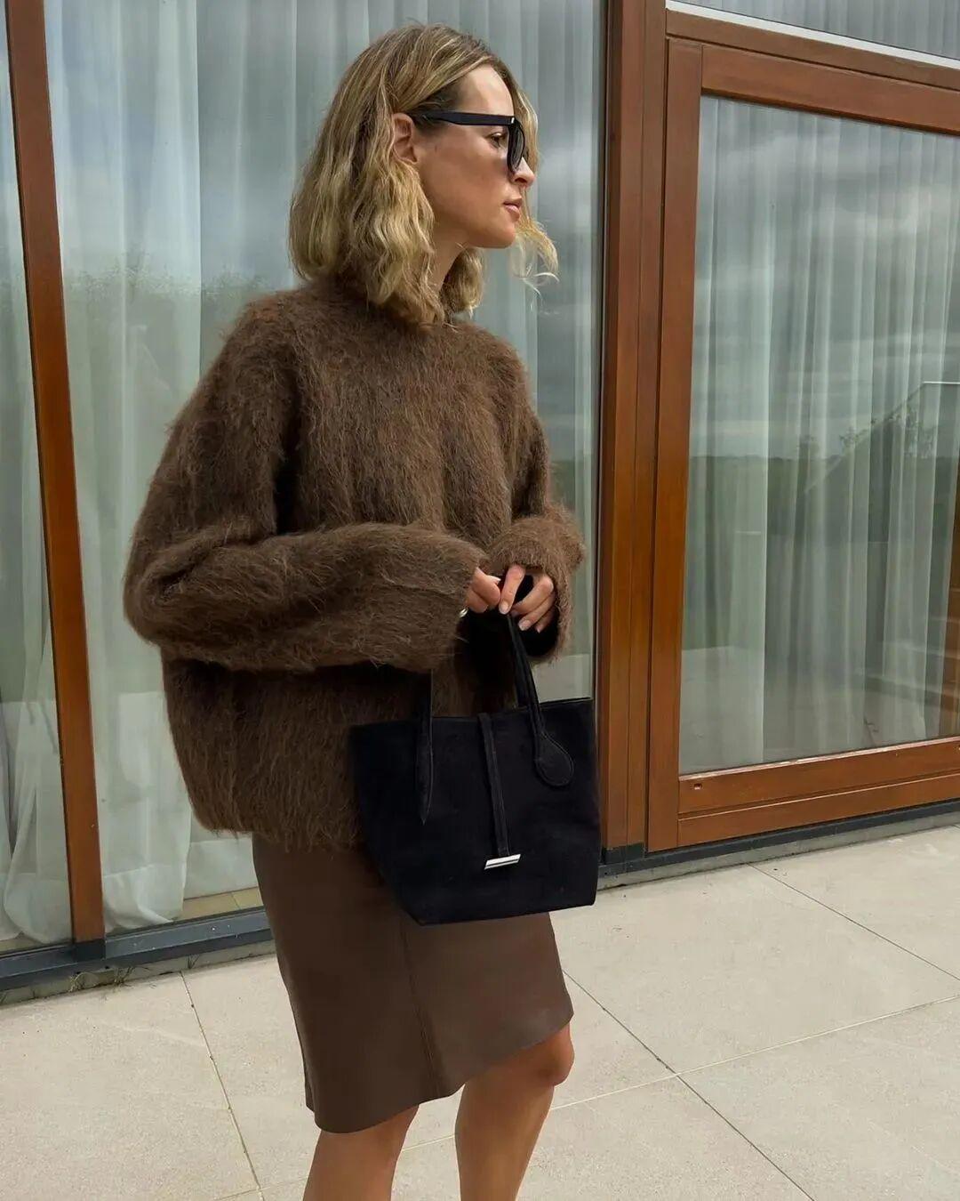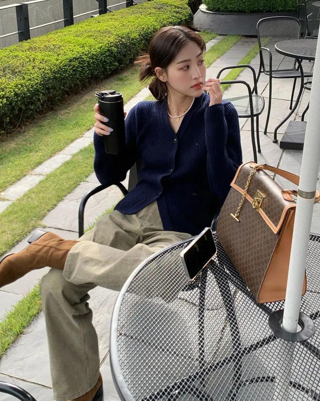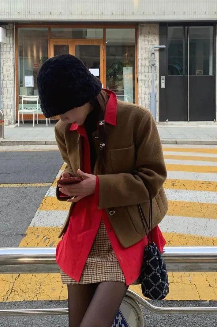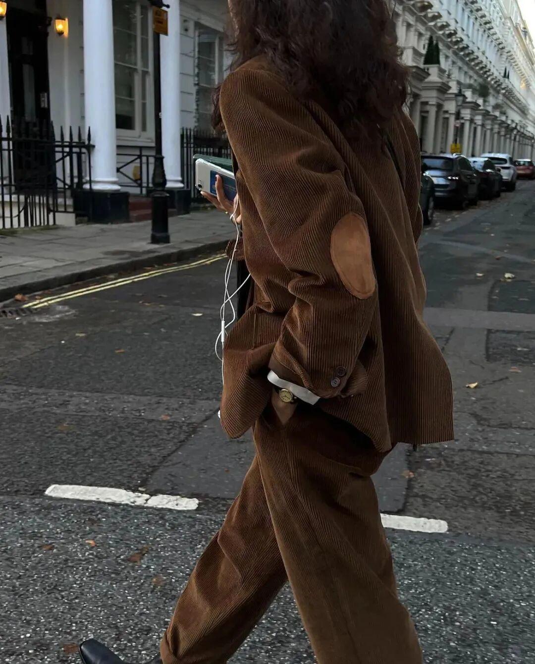 纯属的美拉德穿搭少不了同色系、或者相近色系组合,但在配色时一定不要忘了,上下左右之间的视觉效果一定要产生关联感。
