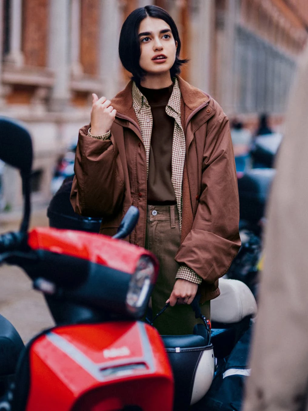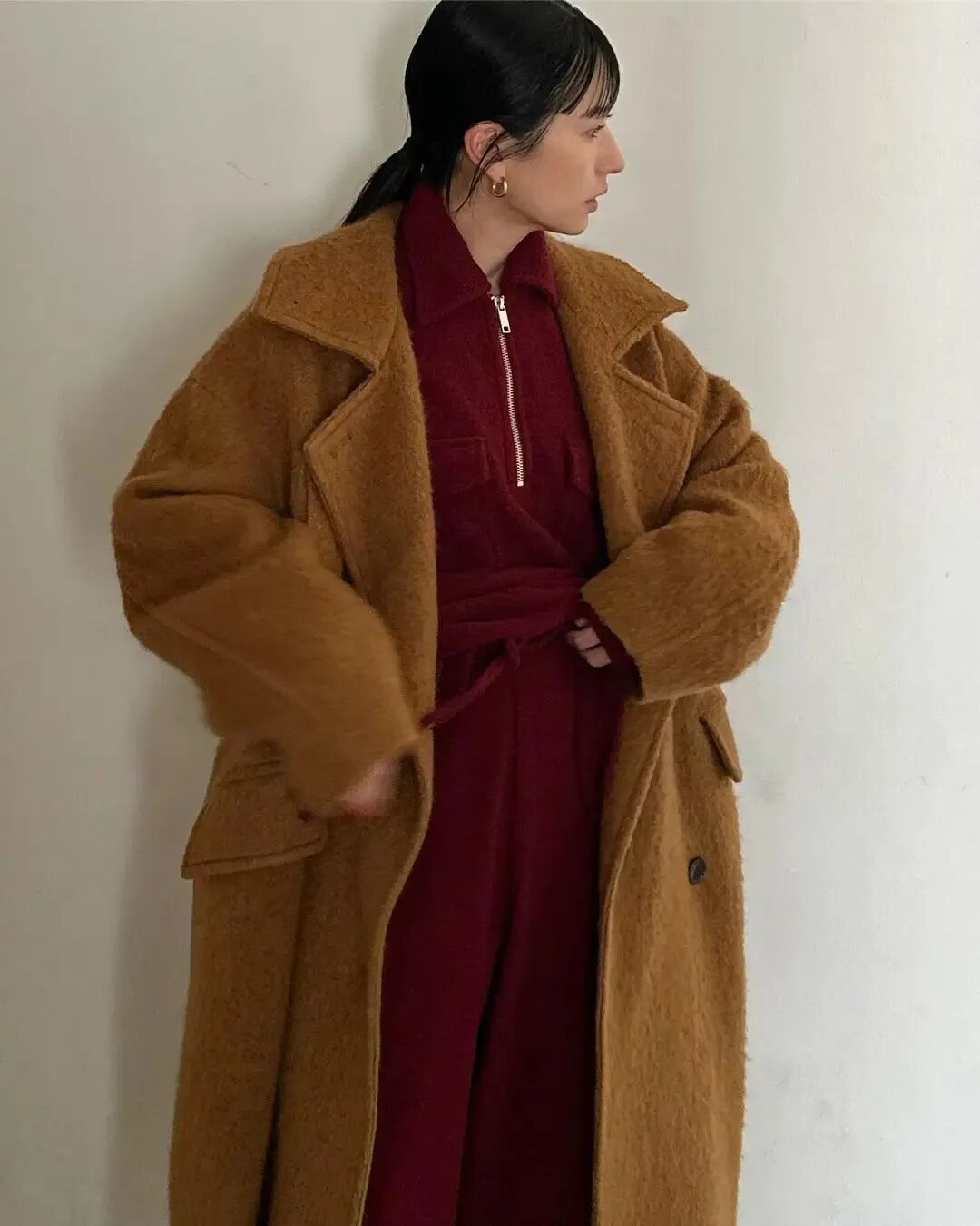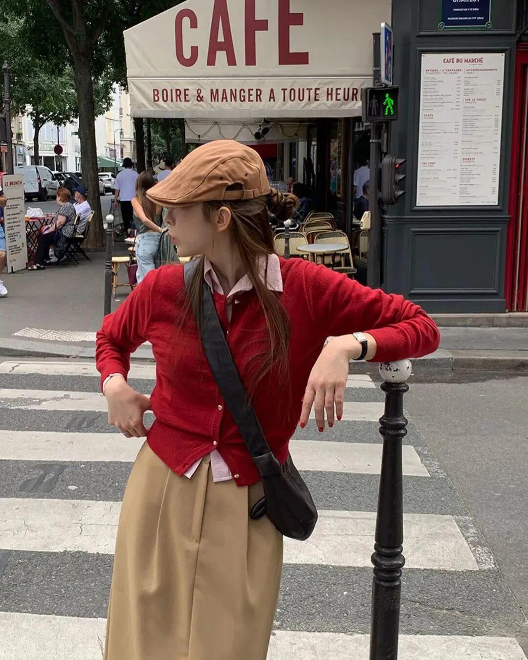 正宗的美拉德穿搭离不开红调,但是什么红调、红到什么程度才能更好的融入棕色的氛围里,就是另一个问题了。