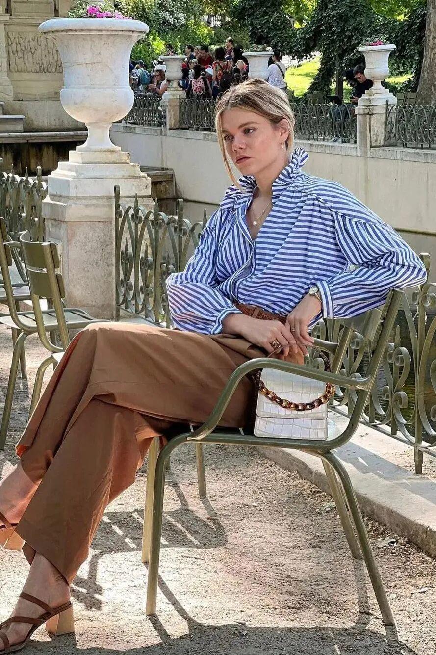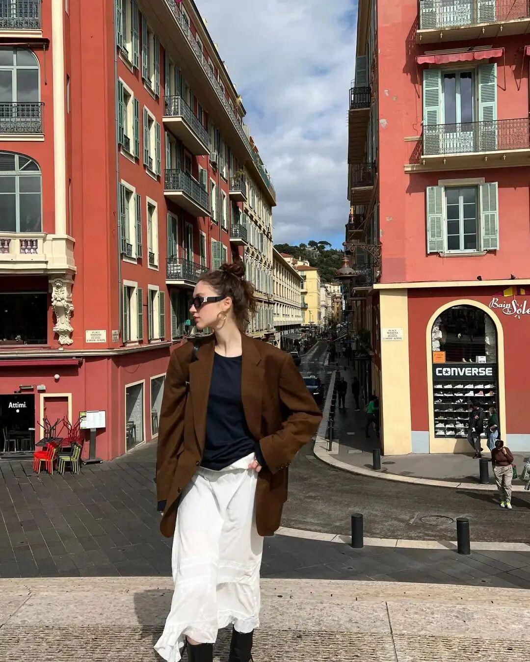 而且白色+棕色这一组合,正好符合今年最最热门的老钱气质穿搭红领金服,既有深厚的品味质感,又有悠闲的惬意氛围。