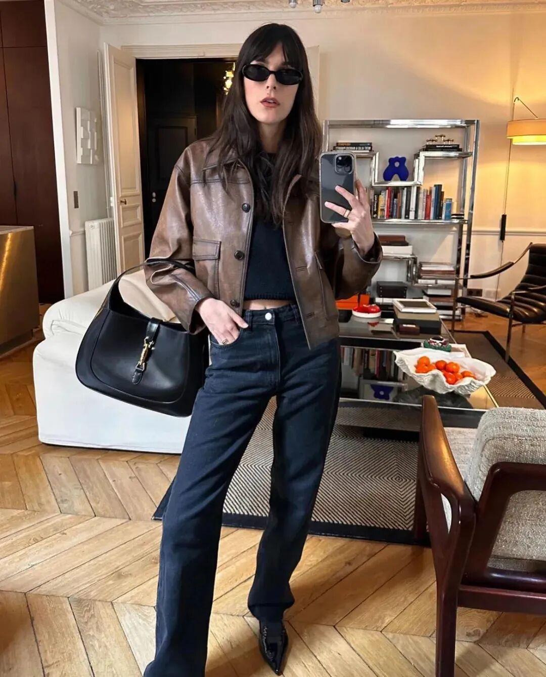 特别是在整体穿搭里融入一些皮质黑的时候,光泽感就是最好的奢侈感。