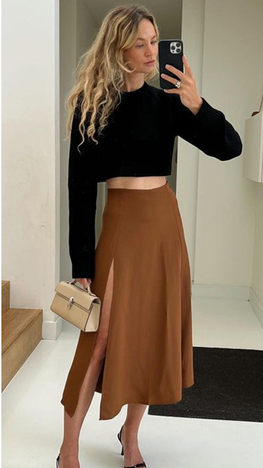 另外即便是白皮穿棕色,不同的棕调给皮肤带去的质感也不尽相同。