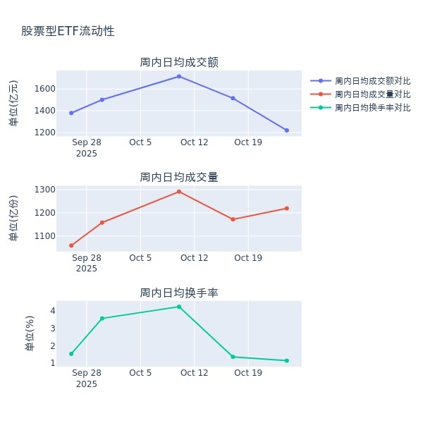 流动性方面,上周股票型ETF市场日均成交额减少19.5%,日均成交量增加4.0%,换手率减少0.23%。